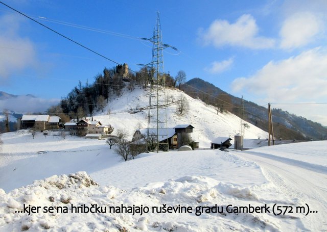 nad naseljem Zgornje Izlake (ok. 450 m), od koder se skozi vasi Gamberk,