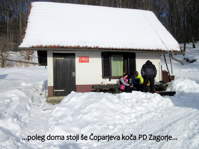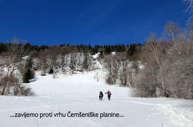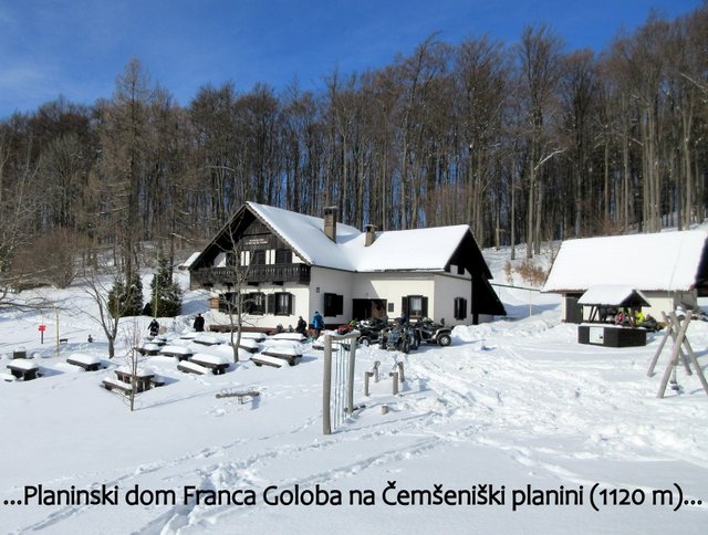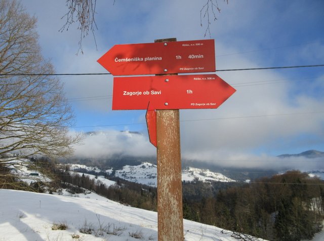 točka v grebenu Čemšeniške planine. Po postanku v planinskem domu (1120 m)