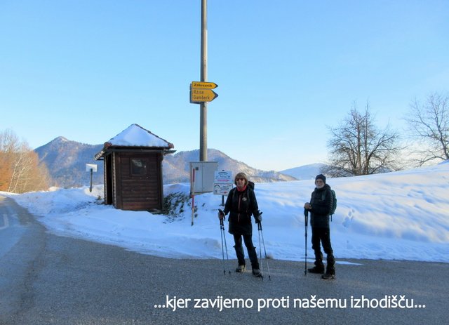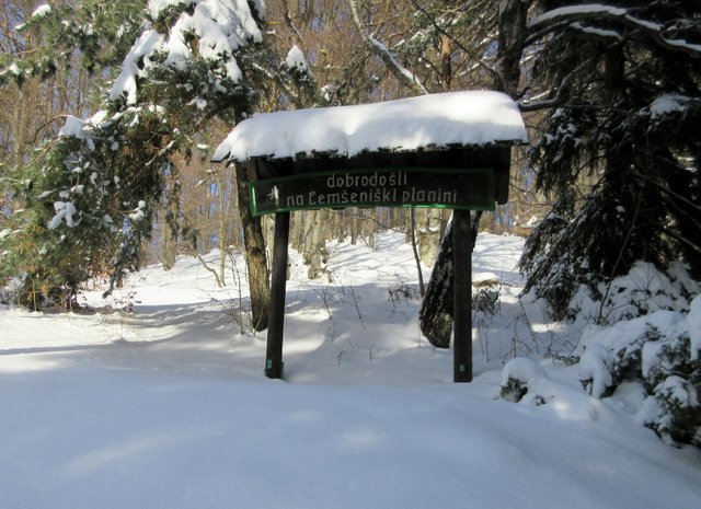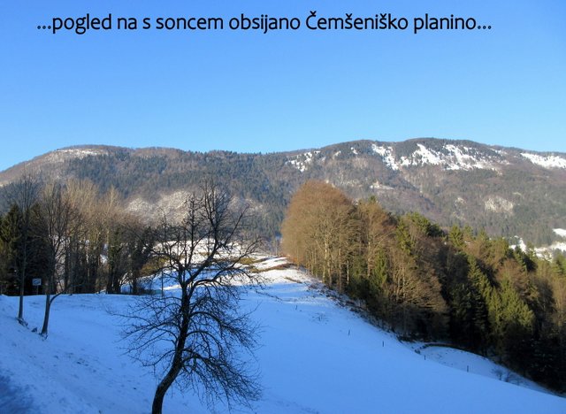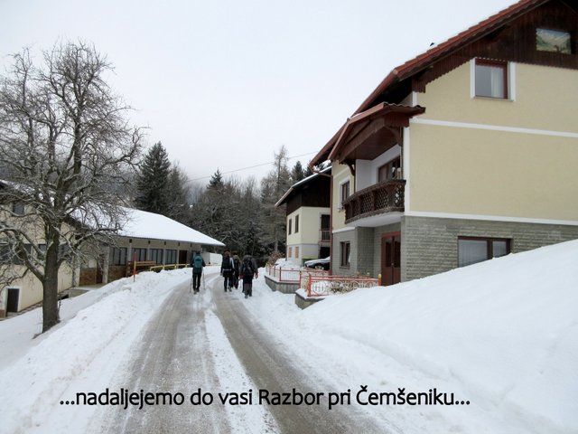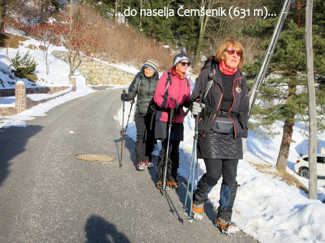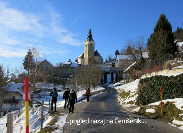 sestopimo do naselja Čemšenik (641 m), ki leži na prisojnih terasah pod