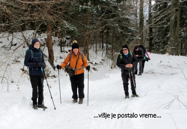 bilo za 6 ur (ok. 15 km); vzpona pa za ok. 800 m.