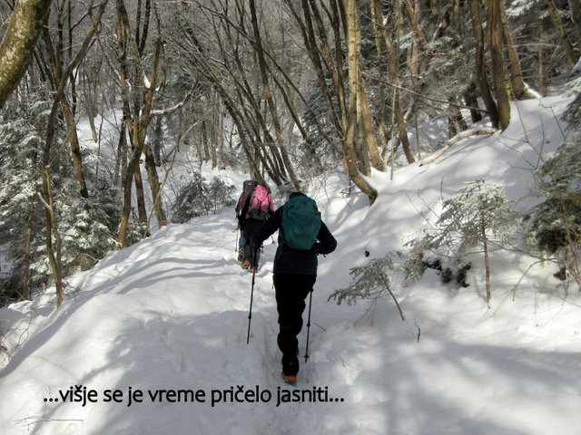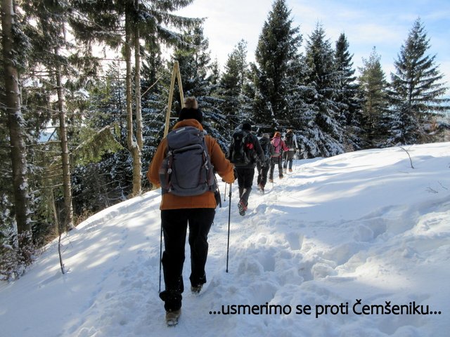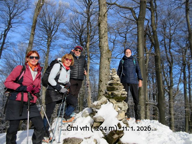 odpravimo po zasneženih pobočjih do Črnega vrha (1204 m), ki je najvišja