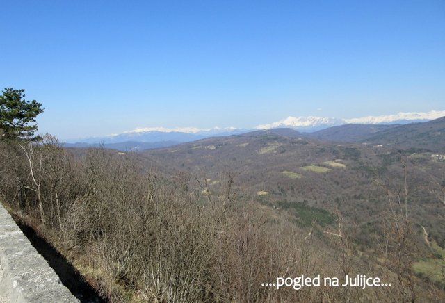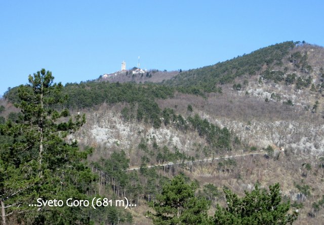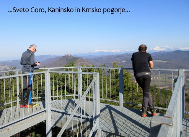na obe Gorici, Sabotin, Banjško planoto, Julijce, itd. Nadaljujemo do zaselka Sveta