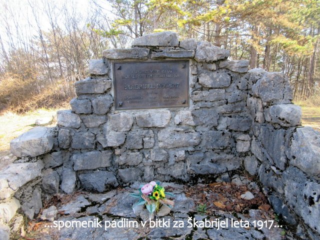 Škabrijela sestopimo na sedlo Prevala (336 m), kjer se nahaja spominsko obeležje