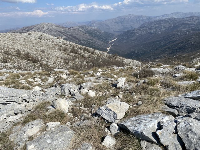 Kmalu smo e začele vzpenjati po surovem kamnitem grmičastem terenu. Sonce še ni bilo