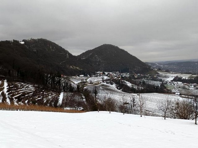 KUNŠPERSKA GORA jan 2. Kot se spodobi, sva sezono pričela na "hišni" gori. Vsem planinskim prijateljem želiva srečno in zdravo 2026, naj vas spremlja varen korak in dober razgled. Mirko in Alenka.