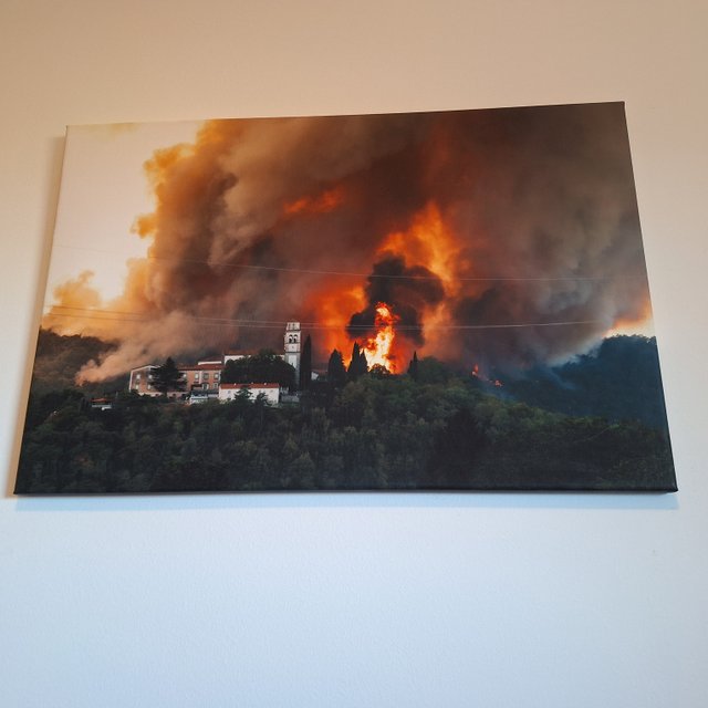 fotografijo s podobo Marije, ki čuva naselje pred uničujočim požarom.