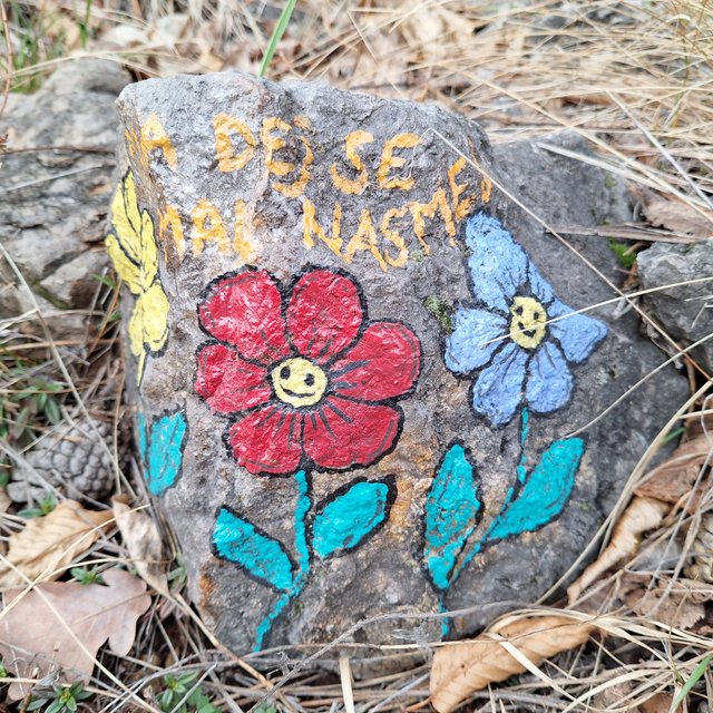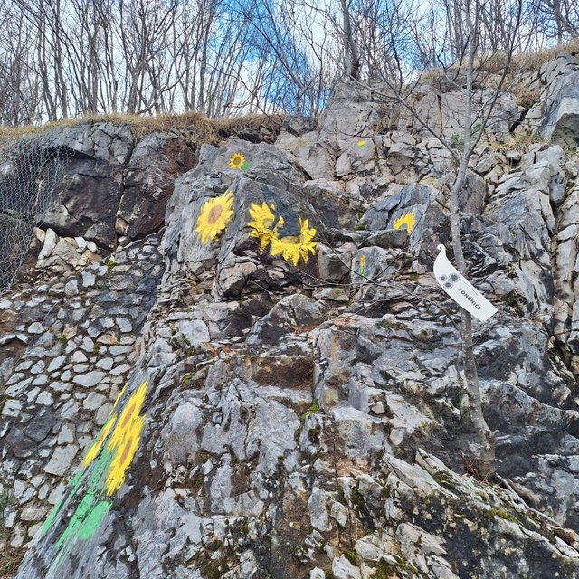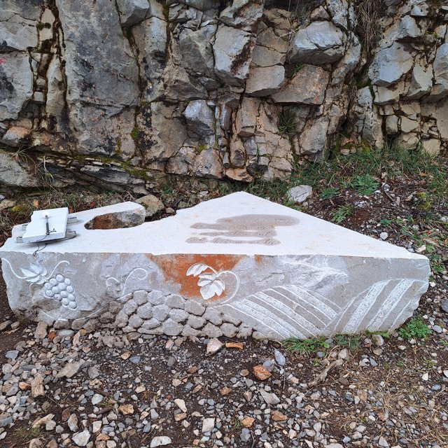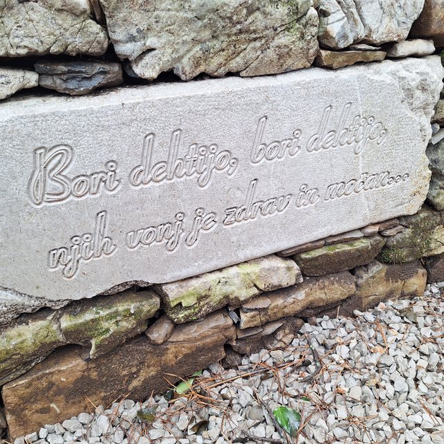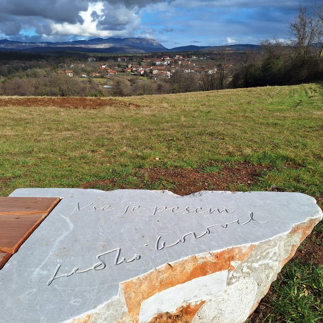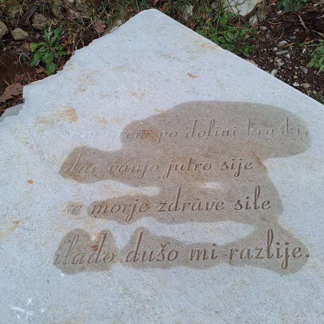 Tomaju in naprej skozi Šmarje v Sežano. Lepa, nenaporna pot, ob njej pa kamni z verzi