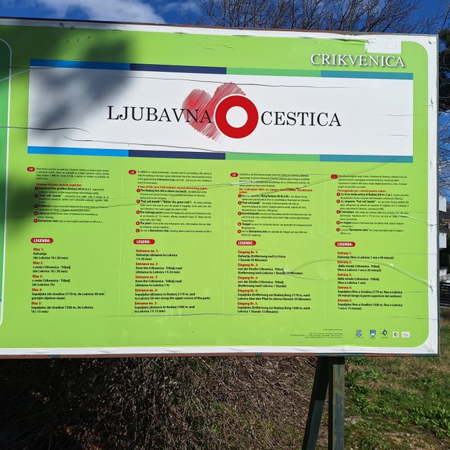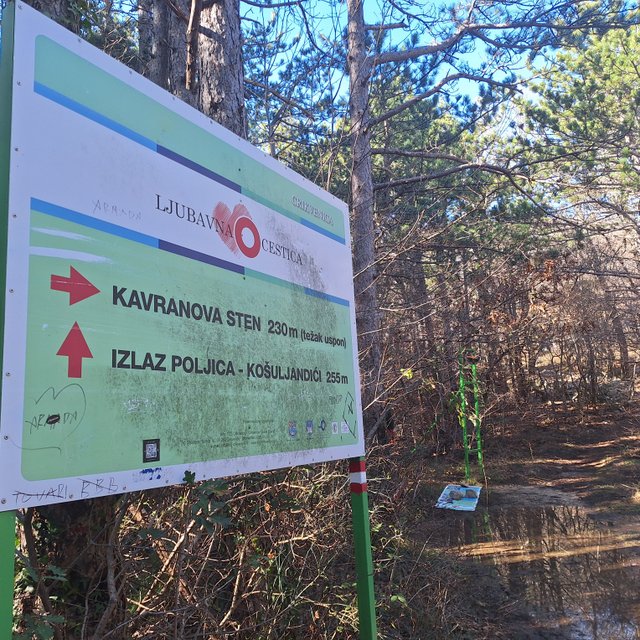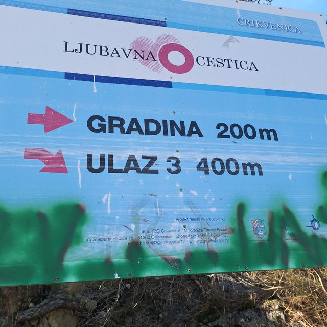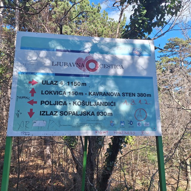 Na koncu naselja Crikvenica sva našla označbe za Kotor, Ljubavno cestico, Ljubavni