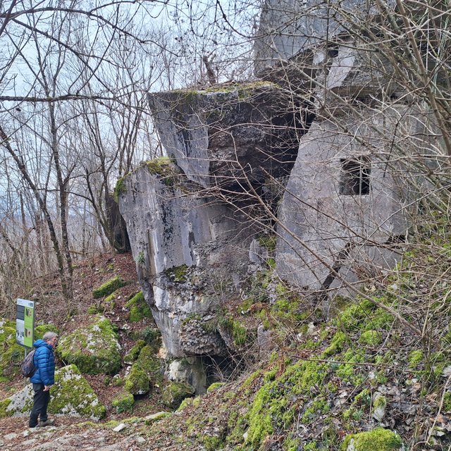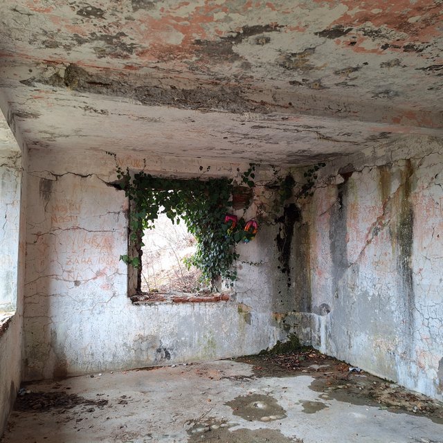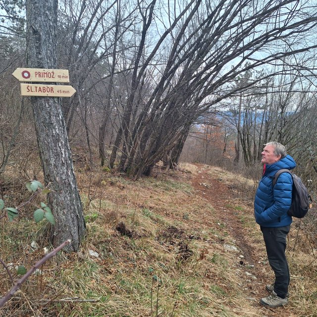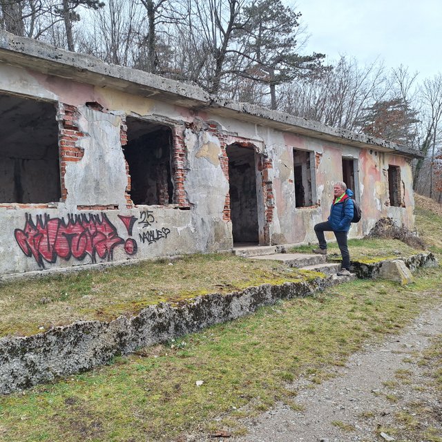 poti raste trava. Nazaj grede sva se vzpela na Primož in med podirajočimi se bunkerji