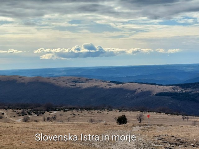poti na morje. Slavnik je gora z bogatim razgledom. Z vrha smo videli Alpski svet,